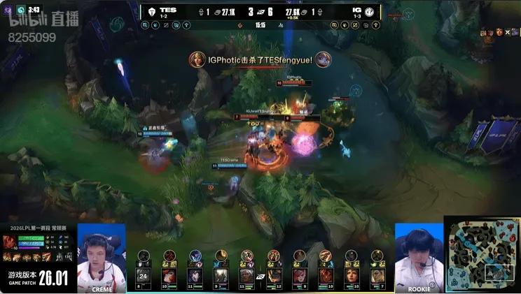 5分钟:IG上野强杀狼母拿下一血但是蔚也被狼母换掉