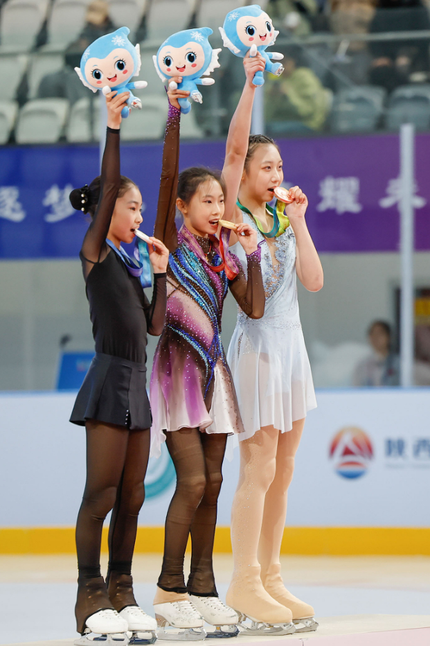 自由滑要求选手在规定时间内完成三周跳、联合跳跃、旋转等全套技术动作,综合考验技术实力与艺术素养。其中,西安市代表队的谷佳宸延续前一天的好状态,凭借一套精彩的自由滑节目,接连夺得了短节目和自由滑两项比赛的金牌。赛后谷佳宸坦言:“场馆非常专业,现场观众也很热情,我对自己的表现也比较满意。”