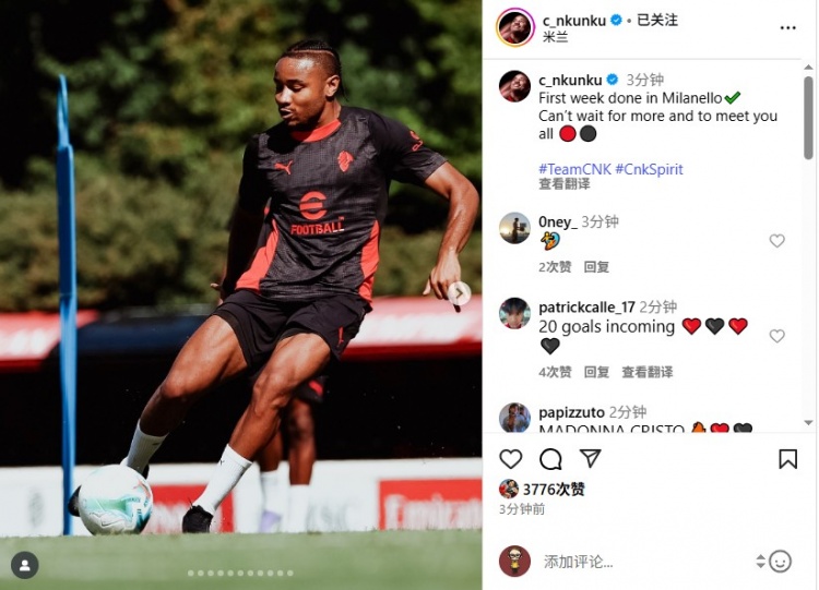 9月5日讯 恩昆库在Instagram发文,谈到在AC米兰第一个星期的感受。
