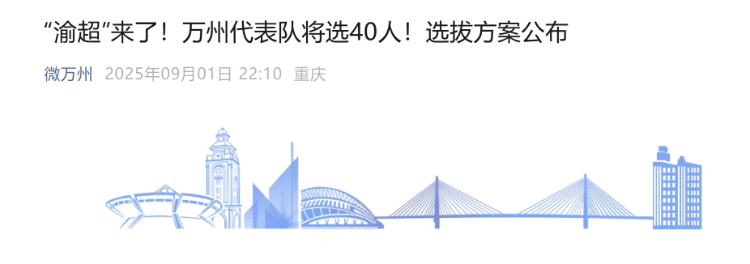 据官方账号“微万州”消息,为切实提升万州代表队的竞技水平与竞争力,计划通过严格、公正、科学的选拔机制,从报名球员中择优遴选40名(含5名外卡球员)综合素质优异者,组建万州代表队参加“渝超”。当地专门制定并对外公布了选拔方案。