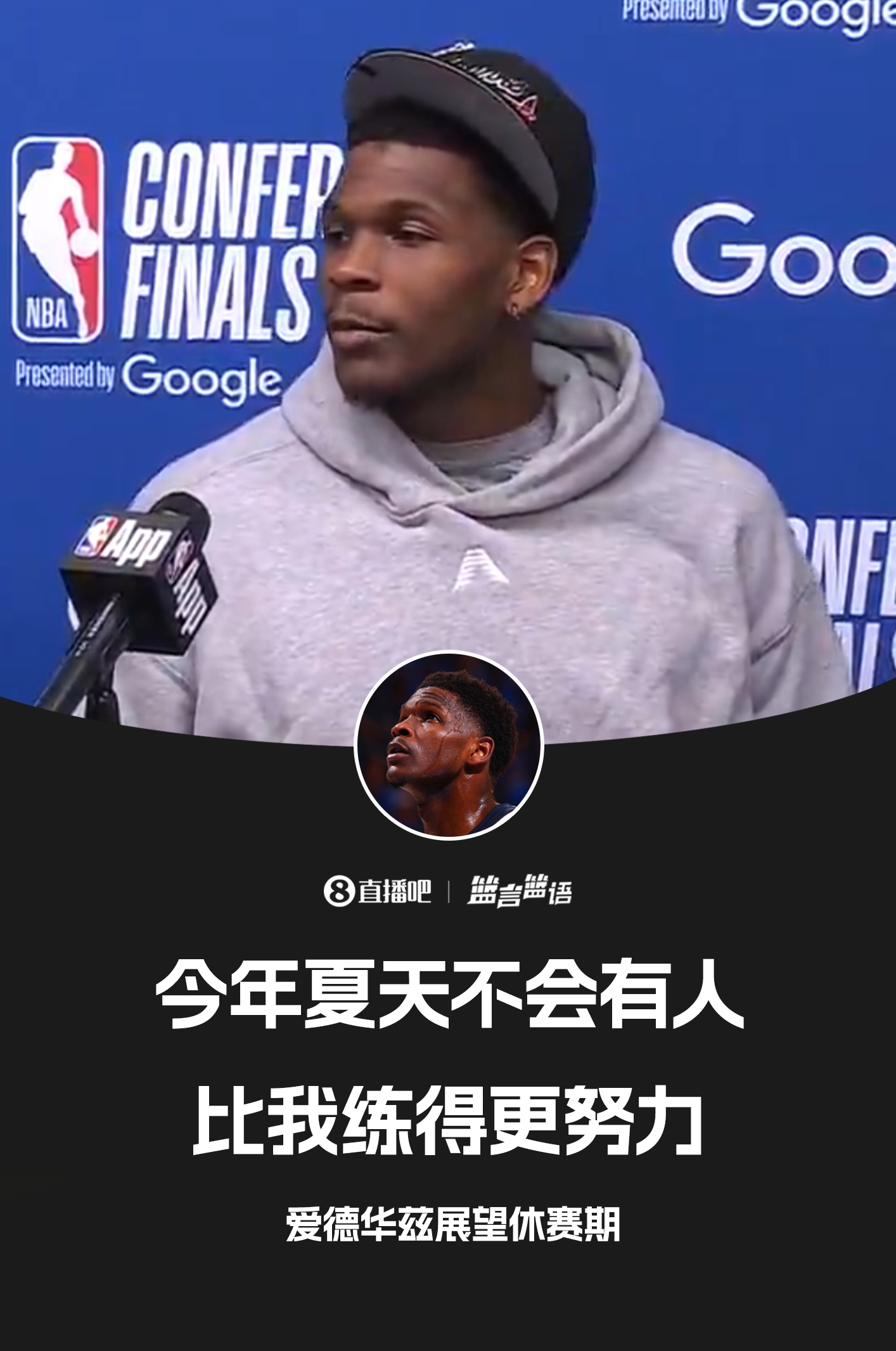 在今年季后赛输给雷霆之后,爱德华兹曾表示,今年夏天不会有人比他训练更刻苦。