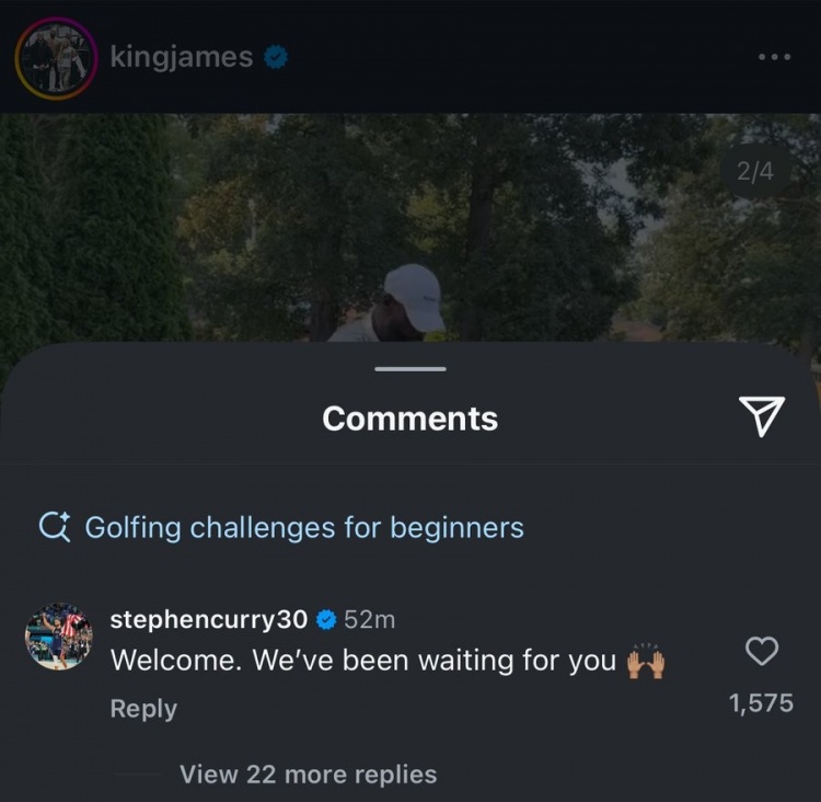 勇士后卫库里评论道:“欢迎加入。我们一直在等你🙌 ”